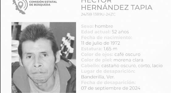 La ficha 24/SB 1375U-24ZN reporta la desaparición de Abraham Méndez Sánchez, de 65 años de edad, con quien se perdió el contacto el pasado 7 de septiembre de 2024 en Camino a Palmarcillo, Atzalan, Veracruz.