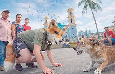 En la publicación aparece el kiosco del parque Zamora y jóvenes caracterizados como lobos, perros, entre otros animales.