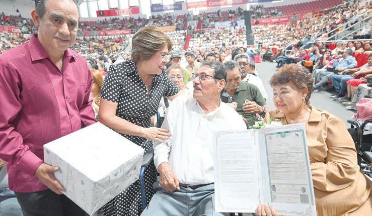 Tras el mensaje y la formalización civil de los matrimonios, se entregaron 10 actas simbólicas a igual número de parejas. Posteriormente, las y los nuevos esposos compartieron el tradicional corte de pastel, recibieron obsequios y participaron en la fotografía oficial que marcó este día inolvidable.
