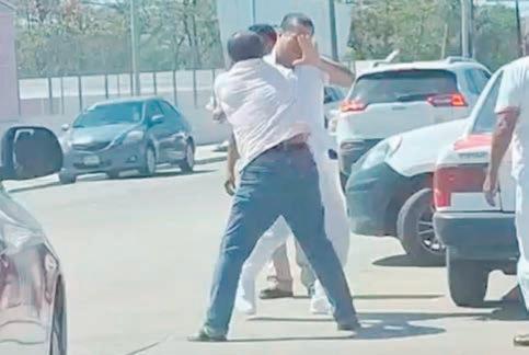 Un taxista y presuntamente un panadero se enfrentaron a golpes en la avenida Juan Osorio López de Coatzacoalcos, casi esquina con la carretera Transístmica.