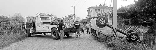 y se impactó contra los cables tensores de un poste propiedad de la Comisión Federal de Electricidad -CFE-, por lo que el vehículo terminó enredado en los cables, lo que provocó que girara bruscamente y volcara, quedando con las llantas hacia arriba.