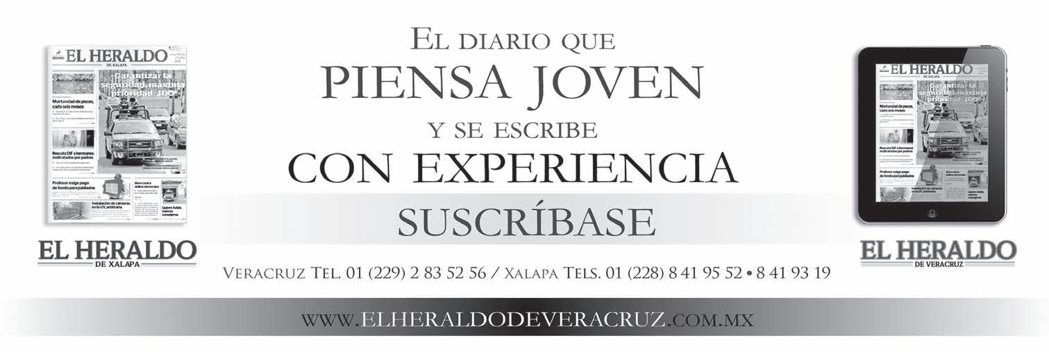 El Heraldo de Veracruz es una publicación de lunes a Lunes. Editor responsable Ing. Eduardo Sánchez Macías. Número de Certificado de Reserva de Derecho al Uso Exclusivo del título 04-2010110913249400-101. Certificado de Licitud de Título: 15875 Certificado de licitud de contenido 15875. Domicilio de la publicación, impreso y distribuido por El Heraldo de Veracruz, con domicilio en Lomas del Bosque No. 18, Lomas Residencial, Alvarado, Veracruz, C.P. 95264; Teléfonos (01229) 9210531 y 3004520. elheraldodeveracruz@gmail.com