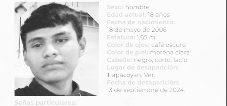 La ficha 24/SB 1396U-24ZC reporta la desaparición de Kevin González Narváez, de 21 años de edad, con quien se perdió el contacto el pasado 30 de agosto de 2024 en Jalacingo, Veracruz.