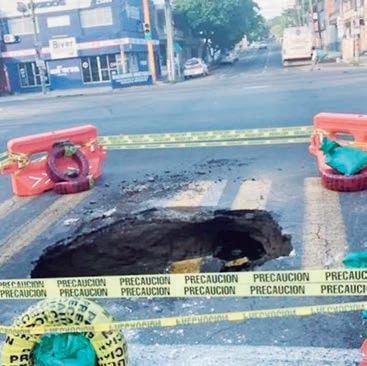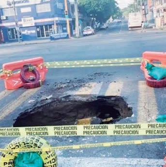 Lo peligroso de este socavón es que se puede apreciar en su interior que la tierra se sigue deslavando y pareciera una cueva con agua, por lo cual podría seguir creciendo de no repararse adecuadamente.