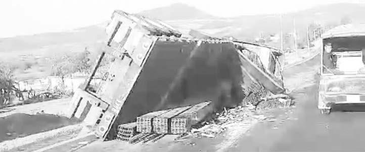 mión de la empresa Transportes Sánchez que llevaba rejas para pollos, cuyo chófer lo dejó abandonado y escapó a pie.