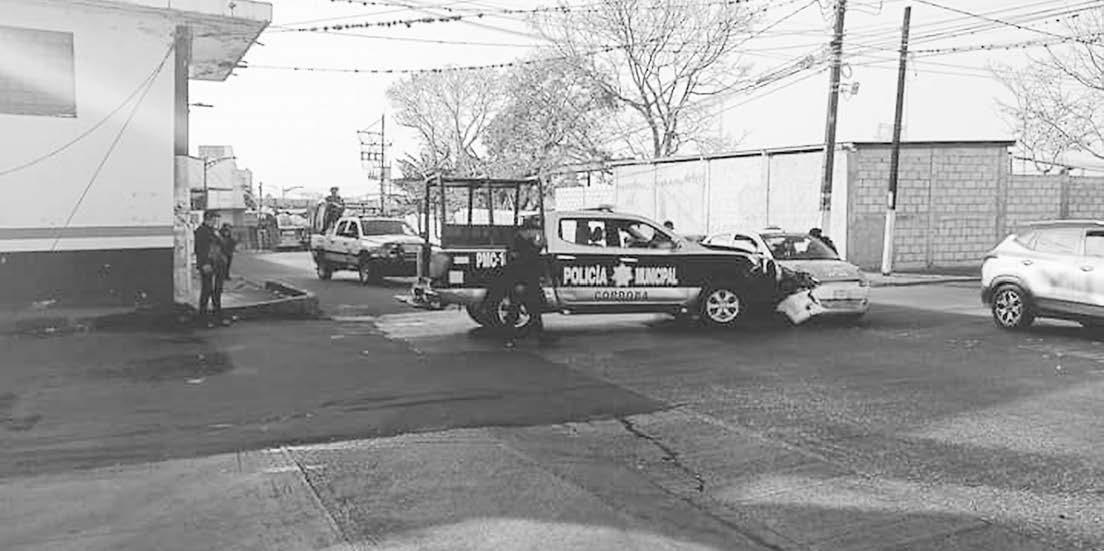 El choque entre un taxi de Córdoba y una patrulla de la Policía Municipal en calles del Barrio Los Naranjos, de la colonia Centro dejó como saldo una persona lesionada y daños materiales.