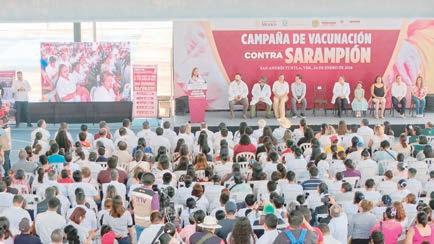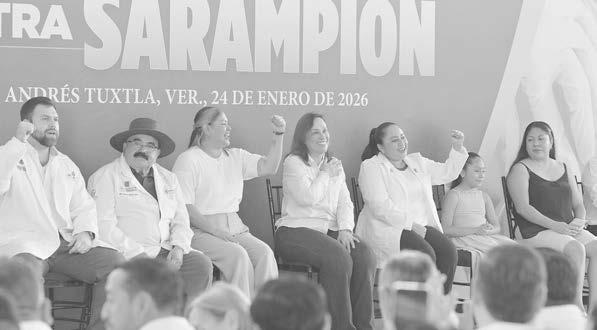 más importante: cuidar la vida y la salud de las y los veracruzanos”. La vacunación se realiza de manera coordinada entre las 11 jurisdicciones sanitarias de la Secretaría de Salud y el IMSS-Bienestar, ya que “la gente no distingue competencias; lo que exige son resultados”. Durante su intervención, la secre-