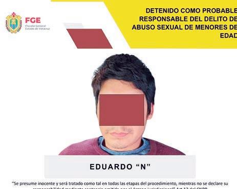 La Fiscalía General del Estado informa que, elementos de la Policía Ministerial adscritos a la Fiscalía Especializada en Investigación de Delitos de Violencia contra la Familia, Mujeres, Niñas y Niños y Trata de Personas cumplimentaron orden de aprehensión en contra de Eduardo “N” como probable responsable del delito de abuso sexual de menores de edad en agravio de una víctima de identidad resguardada. En respeto a sus derechos humanos y al debido proceso el ahora detenido será puesto a disposición del Juez de Control en audiencia inicial para que defina su situación jurídica dentro del proceso penal 71/2025.