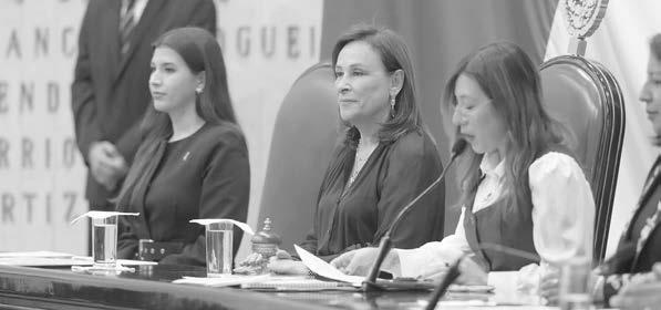 La diputada presidenta de la Mesa Directiva de la LXVII Legislatura, Naomi Edith Gómez Santos, junto con la presidenta del Poder Judicial, Rosalba Hernández Hernández, así