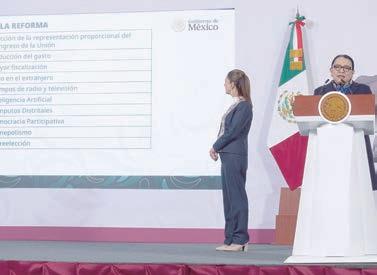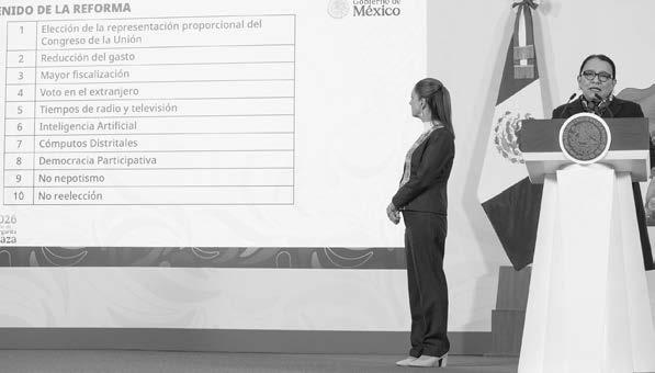 Ciudad de México.- En cumplimiento al compromiso que asumió con el pueblo de México y a sus principios, la Presidenta Claudia Sheinbaum Pardo presentó la iniciativa de reforma constitucional en materia electoral, que será enviada el lunes 2 de marzo al Congreso de la Unión, la cual se compone de 10 puntos: 1. Eliminación de las listas de los partidos políticos para la representación proporcional del Congreso de la Unión; 2. Reducción del 25 por ciento en el costo de las elecciones; 3. Mayor fiscalización; 4. Voto en el extranjero; 5. Disminución de los tiempos de radio y televisión de 48 a 35 minutos diarios; 6. Regulación del uso de Inteligencia Artificial y prohibición de bots; 7. Cómputos Distritales; 8. Democracia Participativa; 9. No nepotismo; y 10. No reelección.
