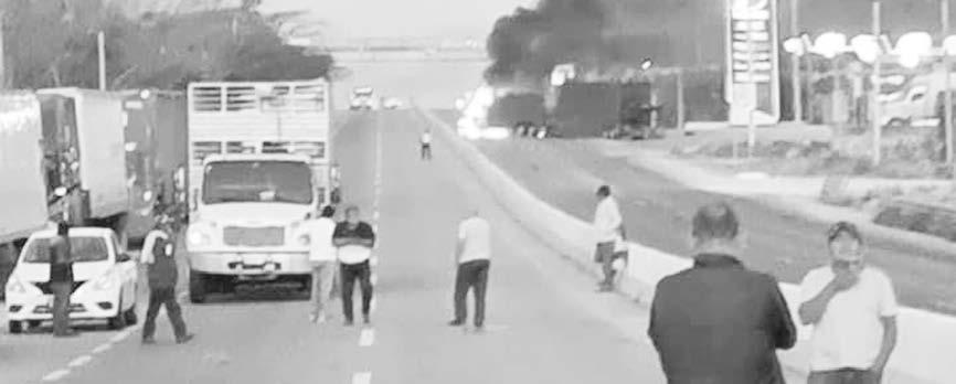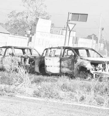 Los cuerpos de los dos hombres que perdieron la vida fueron trasladados hacia el Servicio Médico Forense (Semefo) de Tuxtla, así como los vehículos que fueron quemados, entre camionetas y tráileres.