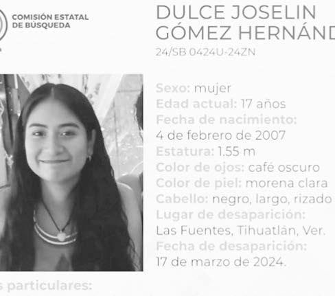 Gómez Hernández, de 17 años de edad, con quien se perdió el contacto el pasado 17 de marzo de 2024 en Las Fuentes, Tihuatlán, Veracruz.