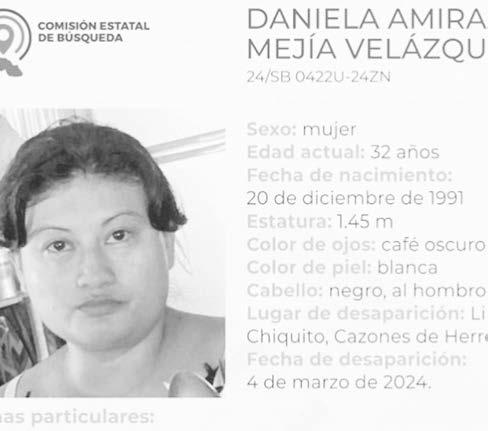 La ficha 24/SB 0422U-24ZN reporta la desaparición de Daniela Amira Mejía