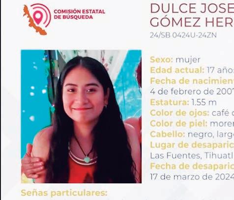 La ficha 24/SB 0424U-24ZN reporta la desaparición de Dulce Jocelín