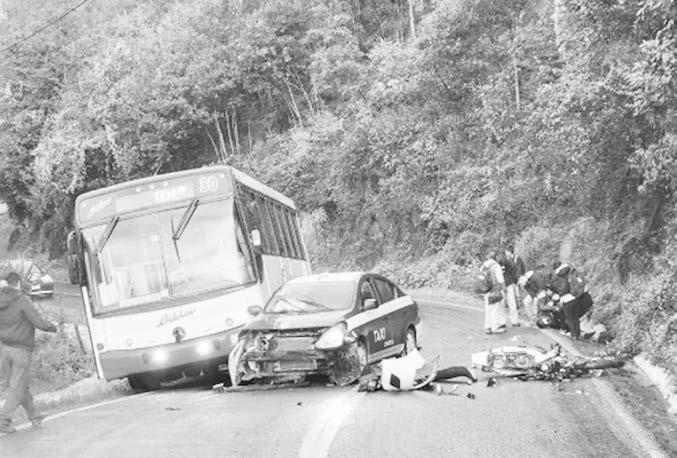 El accidente ocurrió este sábado 25 de enero cuando el conductor de un taxi NissanVersa,con número económico 6 de Zongolica, invadió el carril contrario al intentar rebasar un autobús de pasaje de la Línea Adelas, impactando de frente al motociclista.