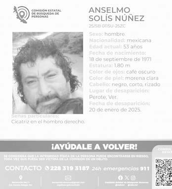 La CEB recomendó que cualquier dato sobre el paradero de Anselmo Solís Núñez se reporte al correo electrónico busqueda.veracruz@gmail.com o a los números telefónicos 228 319 3187 o 911.