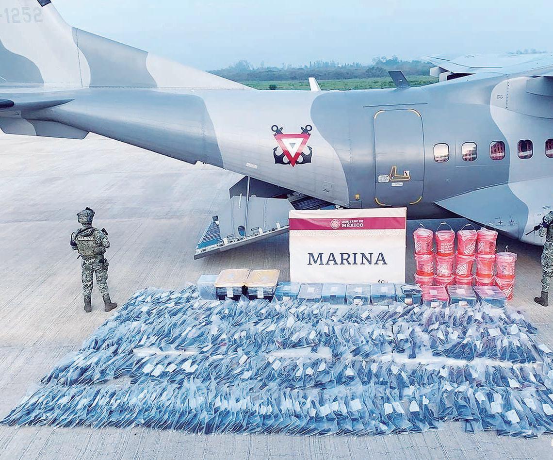 Durante operativo coordinado de los tres órdenes de gobierno en un domicilio de Boca del Río, la Secretaría de MarinaArmada de México aseguró 79.698 kilogramos de droga con características