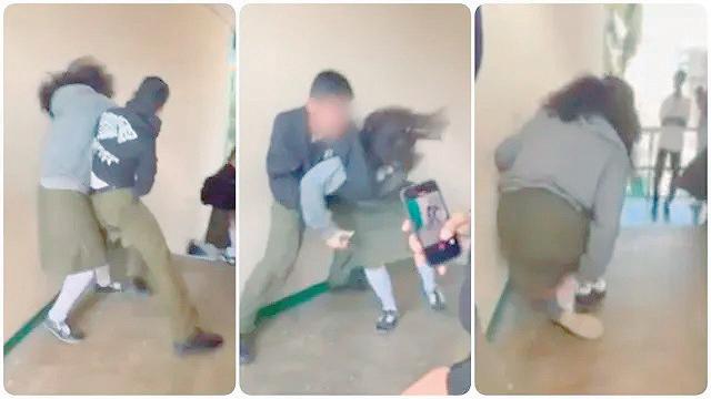 En las imágenes que circulan en redes sociales se observa a un estudiante golpeando a su compañera, mientras otros alumnos