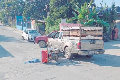 camioneta Nissan Frontier con placas del Estado de Veracruz. De acuerdo con la versión del conductor de la camioneta, quien circulaba sobre la calle Niños Héroes, alcanzó a observar que la motocicleta se aproximaba presuntamente a exceso de velocidad. Señaló que intentó frenar para evitar el impacto; sin embargo, el motociclista terminó estrellándose contra el costado izquierdo frontal de la unidad.