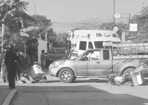 hacia el cofre del vehículo, sufriendo golpes contusos y dolor en el costado. Paramédicos de la Cruz Roja Mexicana acudieron al sitio para brindarle atención prehospitalaria y posteriormente lo trasladaron al hospital IMSS-Bienestar para su valoración médica.