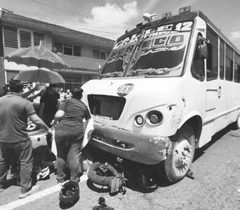 Fue cuando llegó al cruce de la calle Mariano Arista que le salió al paso el autobús de la ruta Calle 12 marcado con el número económico 169, cuyo conductor se metió en sentido contrario.