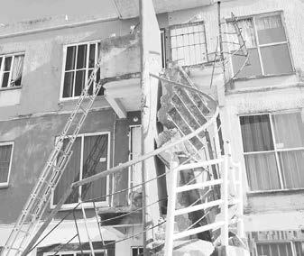 El hecho se registró la tarde de este jueves cuando la escalera del edificio Den la calle Pez Doradose vino abajo, lo que no permitió que quienes estaban en la vivienda pudieran bajar.