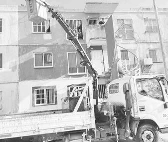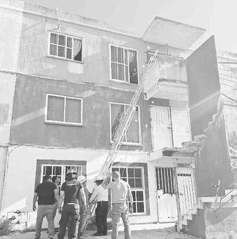 Posteriormente colocaron una escalera para poder llegar hasta el tercer piso, posteriormente llegó una unidad de alumbrado público que con una canastilla apoyo en el rescate.