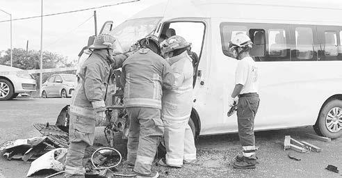 Para liberarlo, personal de B omberos utilizaron “Las quijadas de la vida”, con lo que cortaron el metal y el plástico duro del frente del vehículo.