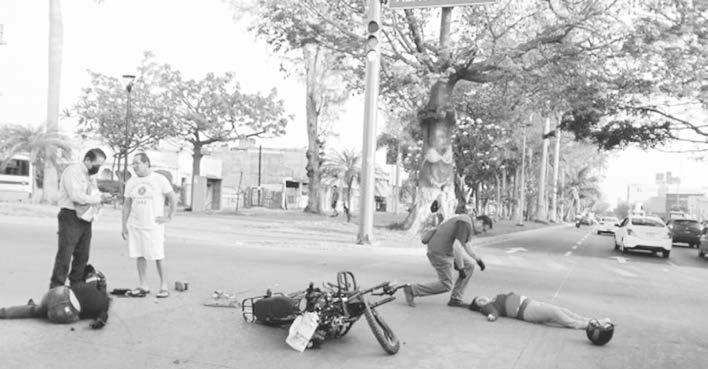 Justo cuando llegó al cruce con la calle Alacio Pérez circulaba Magaly A. A. abordo de su camioneta Mazda, por lo que al pasar los ocupantes de la moto se impactaron en un costado y salieron proyectados hacia la carpeta asfáltica.
