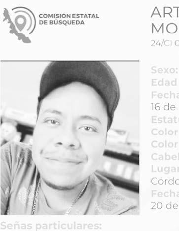 La ficha 24/CI 0165U-24ZC reporta la desaparición de Arturo Montero Vargas, de 28 años de edad, con quien se perdió el contacto el pasado 20 de marzo de 2024 en Córdoba, Veracruz.
