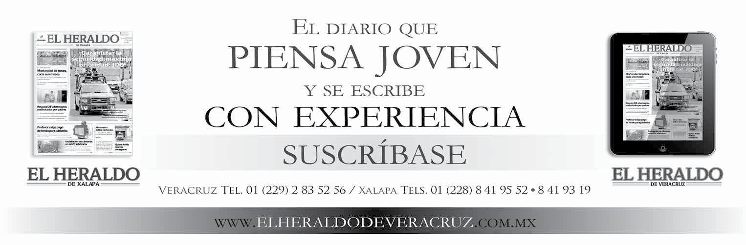El Heraldo de Veracruz es una publicación de lunes a Lunes. Editor responsable Ing. Eduardo Sánchez Macías. Número de Certificado de Reserva de Derecho al Uso Exclusivo del título 04-2010110913249400-101. Certificado de Licitud de Título: 15875 Certificado de licitud de contenido 15875. Domicilio de la publicación, impreso y distribuido por El Heraldo de Veracruz, con domicilio en Lomas del Bosque No. 18, Lomas Residencial, Alvarado, Veracruz, C.P. 95264; Teléfonos (01229) 9210531 y 3004520. elheraldodeveracruz@gmail.com