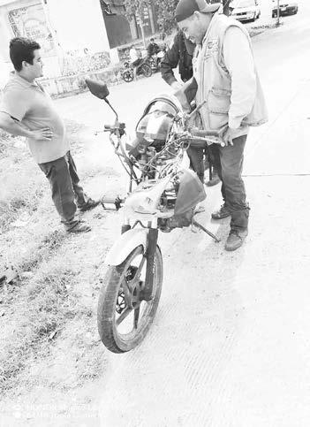 Se trata de una motocicleta marca Italika, de color gris, el cual su conductor resultó ileso, pero la motocicleta presentó daños materiales al igual que el auto de renta.