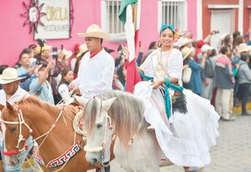 monio cultural del Sotavento. Las abanderadas portan el traje de jarocha, elaborado de manera artesanal, mientras que los jinetes visten guayabera y atuendo blanco tradicional, símbolos de la elegancia, la herencia cultural de Tlacotalpan y del trabajo artesanal transmitido de generación en generación.