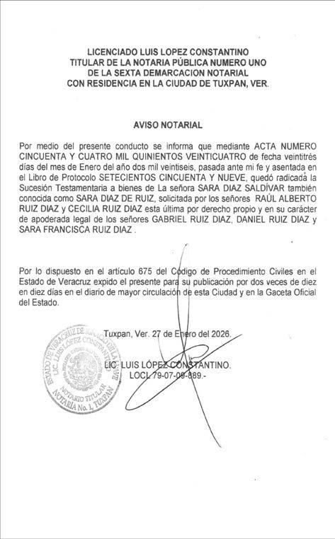El Heraldo de Veracruz es una publicación de lunes a sábado. Editor responsable Ing. Eduardo Sánchez Macías, Número de Certificado de Reserva de Derecho al Uso Exclusivo del título 04-2010110913214400-101. Certificado de Licitud de Título: 15875. Certificado de licitud de contenido 15875. Domicilio de la publicación, impreso y distribuido por El Heraldo de Veracruz, con domicilio en Blvd. Rafael Martínez de la Torre #168 Col. San Manuel, Martínez de la Torre, Veracruz C.P. 93600, México. Tel. 01 (232) 3248546 y (232) 3244676.