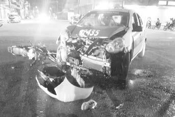 El accidente ocurrió a las 23:00 horas de la noche del pasado viernes, en la carretera federal número 129, por dónde un motociclista que circulaba a exceso de velocidad en dirección a San Manuel, al no respetar la luz roja del semáforo, se estrelló contra un taxi, su cuerpo voló por los aires y rebotó en la cinta asfáltica.