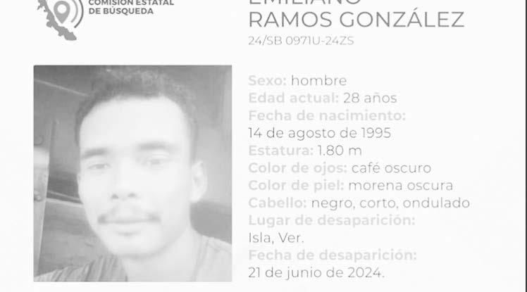 La ficha 24/SB 0971U-24ZS reporta la desaparición de Emiliano Ramos González, de 28 años de edad, con quien se perdió contacto el pasado 21