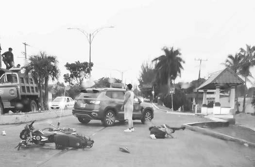 Tras el impacto, dos jóvenes salieron volando, cayendo aparentemente sobre el pavimento, desafortunadamente, no portaban casco.
