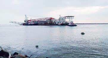 Tres remolcadores trasladaron a la barcaza Tog Mor a los muelles de Permaducto (Protexa) en Coatzacoalcos, luego de haber estado encallada en la playa de Villa Allende.