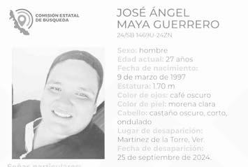 La ficha 24/SB 1469U-24ZN reporta la desaparición de José Ángel Maya Guerrero, de 27 años de edad, con quien se perdió el contacto el pasado 25 de septiembre de 2024 en Martínez de la Torre, Veracruz.
