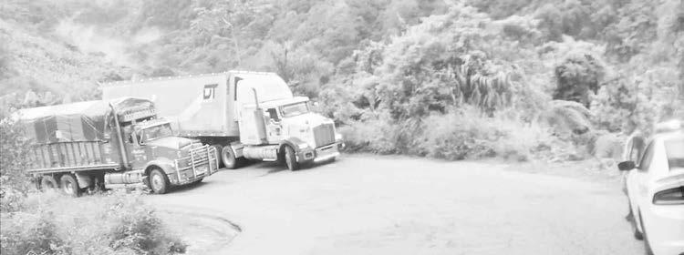 a punto estuvo de caer a un barranco, media caja quedó en el voladero. Policías municipales tomaron conocimiento de este accidente al igual que oficiales de la Guardia Nacional quienes de inmediato abanderaron la zona.