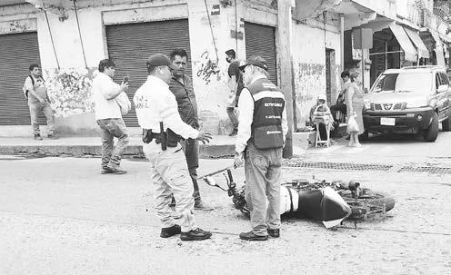Por el pavimento rodó un motociclista, al impactarse contra un automóvil en el crucero de Hidalgo y Melchor Ocampo.