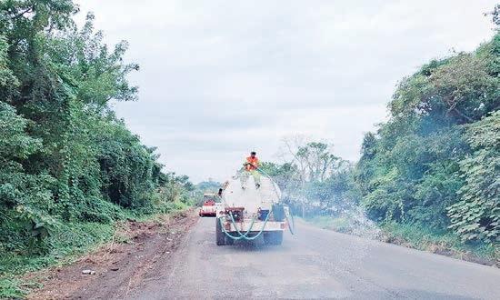 Con el objetivo de mejorar las condiciones de la carretera Tuxpan-Tampico, se llevan a cabo trabajos de renivelaciones aisladas como parte del programa de mantenimiento vial #Bachetón en el estado de Veracruz.