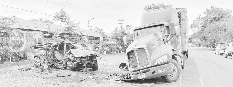 Por lo cual al arribar elementos policiacos confirmaron dicho accidente encontrando una camioneta marca Ford , de color rojo y con placas de circulación XF-4950-B del estado, la cual se encontraba prácticamente destrozada de la parte frontal luego de impactarse contra un tráiler de la marca a Kenworth , de color rojo y con placas de circulación 58-AE-3T del Servicio Público, con razón social de Transportes Car-Fur, de Matamoros
