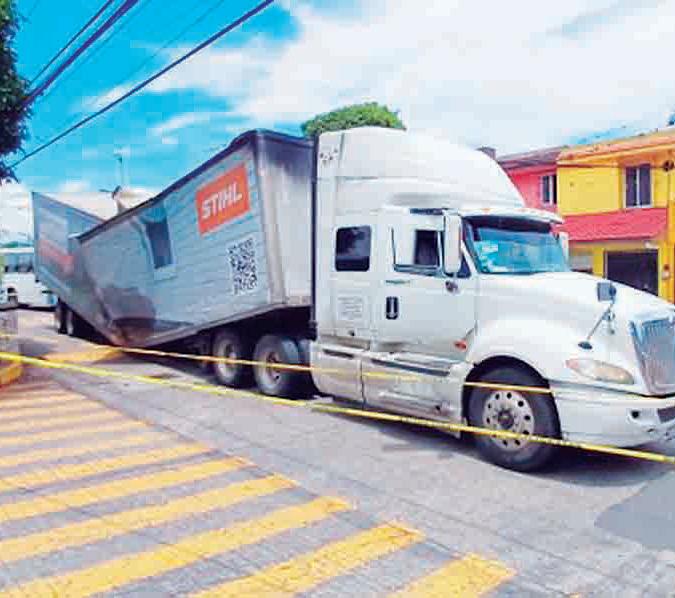 Movilización de cuerpos policiales y de rescate y daños materiales fue el saldo que dejó la ruptura por mitad de un semirremolque articulado tipo caja seca que era jalado por un tráiler en calles de la colonia El Palomar, del municipio de Córdoba.