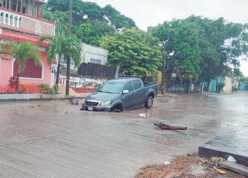 Desafortunadamente, al pasar por el lugar, debido a la lluvia intermitente, el conductor no se percató del hundimiento, que estaba cubierto con agua y no contaba con señalamientos preventivos, por lo que terminó colapsando.