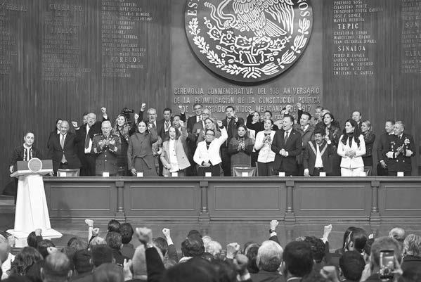República, donde se reunieron los tres Poderes de la Unión, encabezados por la presidenta de la República, Claudia Sheinbaum Pardo, para rendir homenaje a las y los Constituyentes de 1917, responsables de establecer derechos individuales y sociales fundamentales para el país.