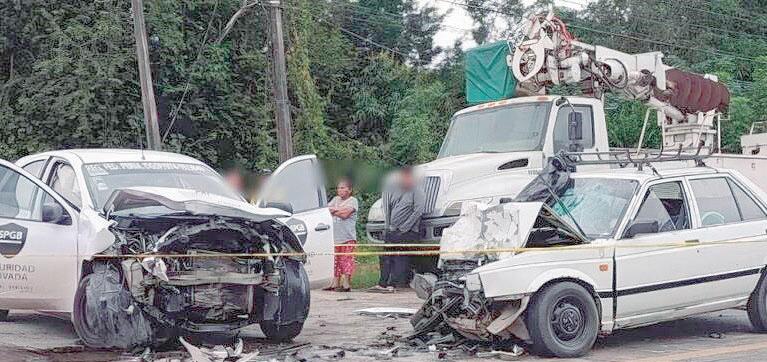 El percance involucró a dos vehículos Nissan: uno particular y otro de una empresa de seguridad privada identificada como SPGB. De acuerdo con los primeros reportes, el automóvil de la empresa habría intentado rebasar, invadiendo el carril contrario.