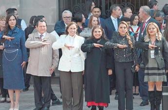 soberanía nacional. Asimismo, afirmó que la Cuarta Transformación ha recuperado la esencia social de la Carta Magna y enfatizó “México no regresará al régimen de privilegios y de corrupción; México tampoco regresará a ser colonia ni protectorado de nadie, y México no entregará nunca sus recursos naturales. Por ello, con entereza y fiel a nuestra historia, decimos con fuerza México no se doblega, no se arrodilla, no se rinde y no se vende”.
