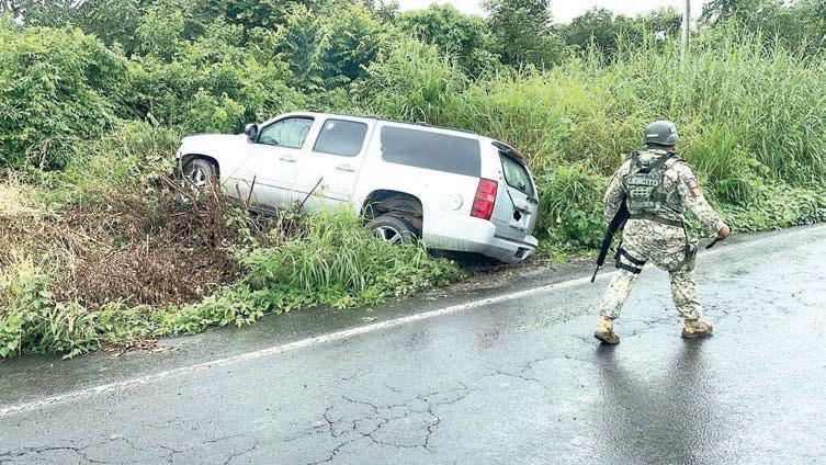 Durante la huida, los ocupantes de una camioneta Suburban blanca blindada perdieron el control y chocaron cerca del rancho conocido como Villacantares, logrando escapar a pie. Momentos después, una Honda CR-V y una Toyota Hilux arribaron al sitio y sus ocupantes abrieron fuego contra los agentes, hiriendo a un policía estatal. Los agresores lanzaron ponchallantas para impedir el avance de las patrullas y lograron darse a la fuga.