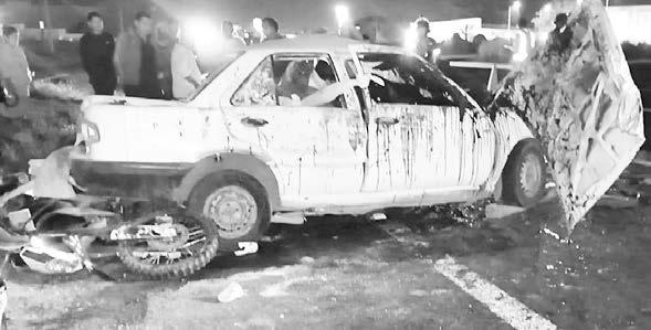El percance ocurrió alrededor de la medianoche, cuando un automóvil Nissan Tsuru blanco, de modelo atrasado, se impactó contra la parte trasera de un tráiler de dimensiones excedidas que realizaba una maniobra de retorno. Tras el choque, el vehículo compacto salió proyectado y arrolló a un motociclista que circulaba por el lugar.